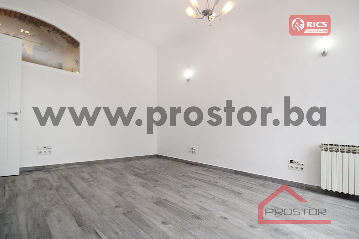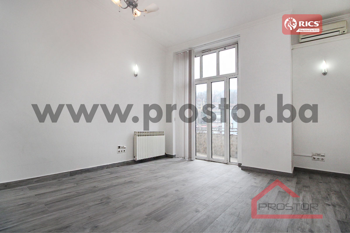 Refurbished unfurnished office space of 110sqm on the first floor of the building is offered for rent. It is located in the center, street Obala Kulina bana. Nearby is the building of the National Theatre, BBI shopping center, a large number of national and international institutions, the court, notary offices and future tenants at their disposal all the facilities needed for daily life (supermarket, public transportation, park, pharmacy, post office etc.). It is important to mention that the property features 1 private parking space.