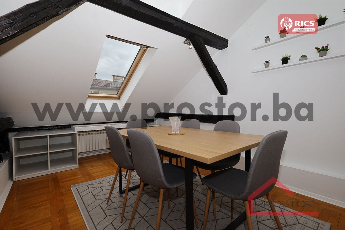 A spacious and completely renovated four-bedroom apartment with a total area of 104 m⊃2; is available for rent, located on the fourth (top) floor of a residential building in Kralja Tvrtka Street, right in the heart of Marijin Dvor – one of the most sought-after and best-connected locations in Sarajevo.