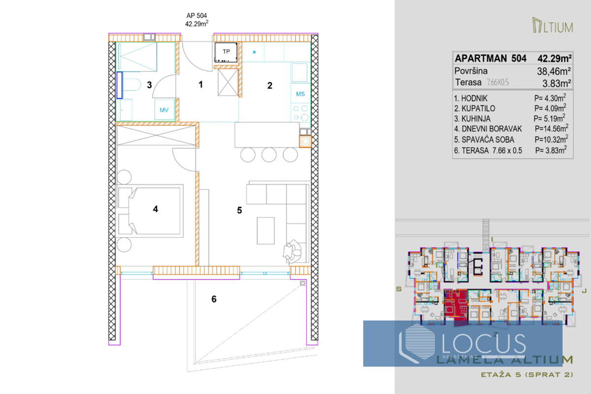 | Property size: 42m2 Room number: 2 Bedroom number: 1 Bathroom number: 1 Toilet number: 0 Year construction: 2025 Year reconstruction: 0000 Floor: 5/6 |