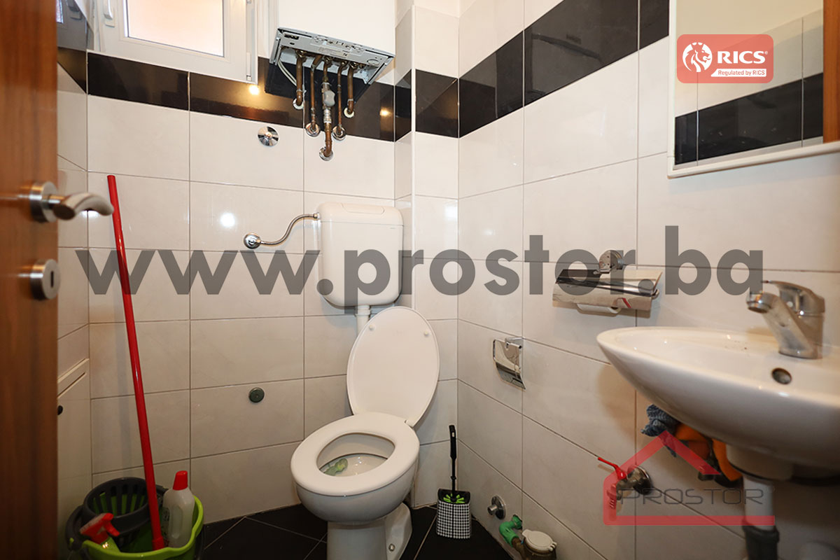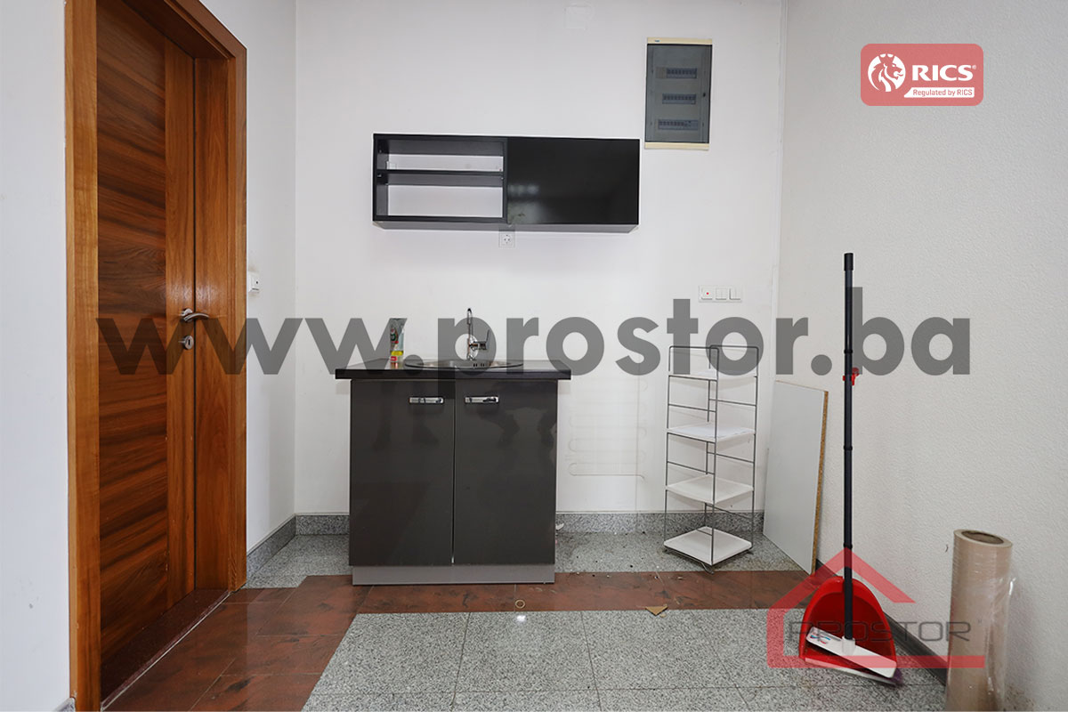 Izdaje se funkcionalan poslovni prostor površine 90m⊃2;, smješten u prizemlju privatne kuće u ulici Hajrudina Šabanije. Prostor se sastoji od tri odvojene prostorije i toaleta, te posjeduje vlastito parking mjesto, što ga čini pogodnim za različite vrste poslovnih aktivnosti poput kancelarija, manjih salona, uslužnih djelatnosti ili administrativnih prostora. Prostor je svijetao, uredan i lako prilagodljiv različitim namjenama.
