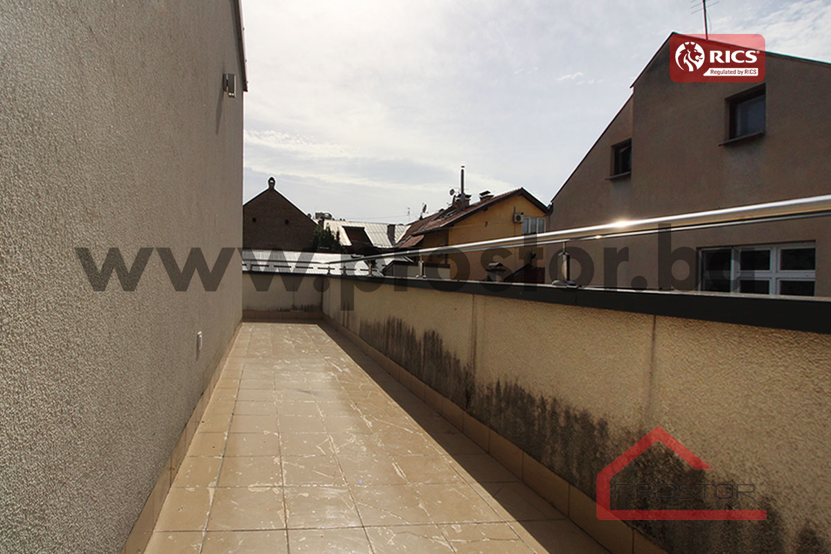 SADRŽAJ Prostor sadrži 10 prostorija (koje se po potrebi mogu dodatno pregraditi), 2 toaleta, ustakljeni balkon, veliku terasu i predsoblje.