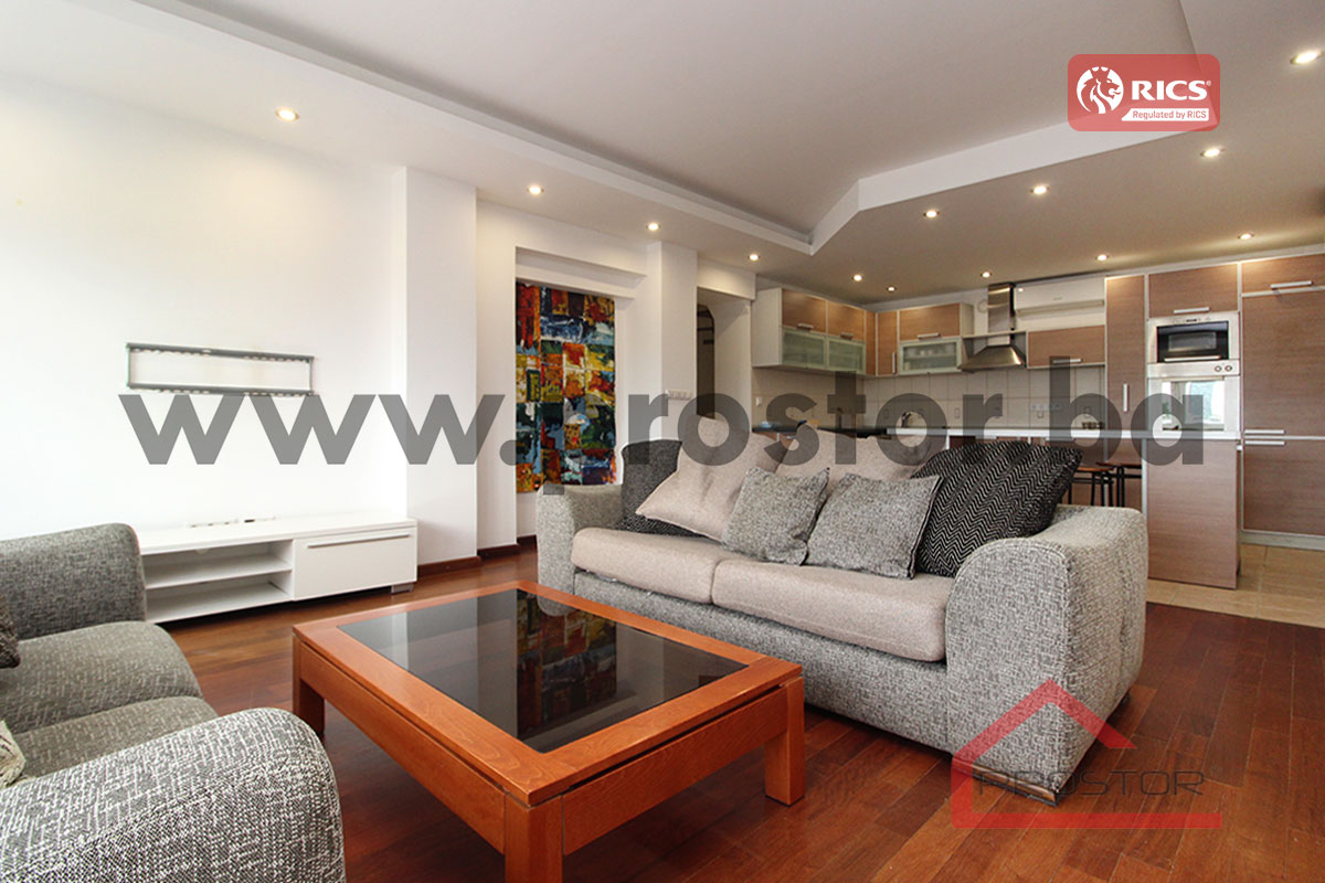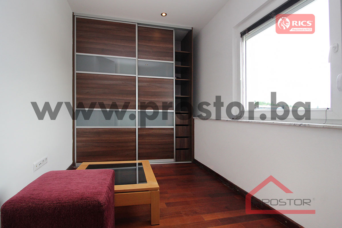 Izdaje se namješten moderan manji četverosoban stan površine 69m⊃2; (stvarna površina po navodima vlasnika je 77m2), smješten na šestom spratu stambene zgrade sa liftom. Nalazi se na prestižnoj lokaciji, u ulici Radićeva, u neposrednoj blizini Aria centra. Budući zakupci na raspolaganju imaju veliku ponuda sadržaja (Aria centar, banka, pošta, pekara, restorani etc).