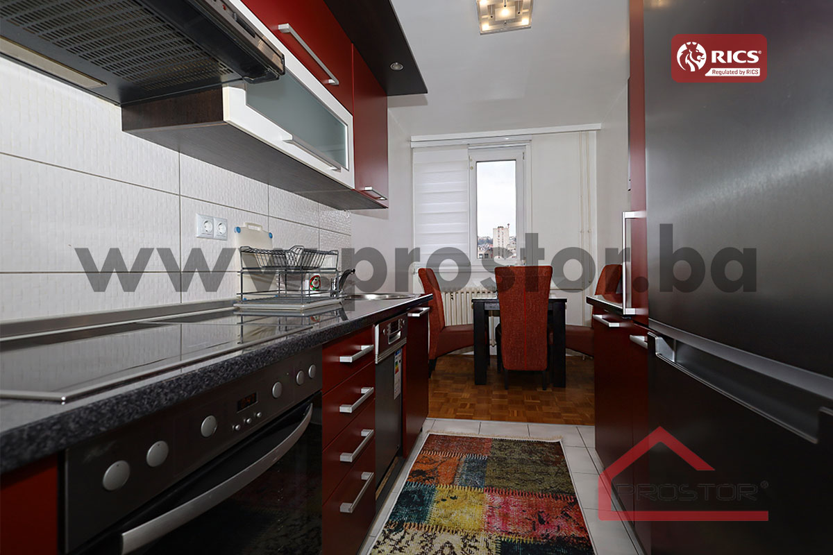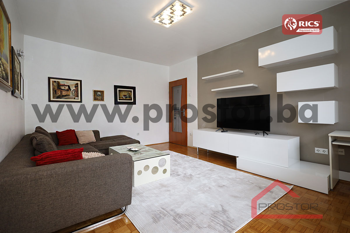 Iznajmljuje se lijepo uređen i potpuno namješten trosoban stan površine 64m⊃2;, smješten na trećem spratu uredno održavane stambene zgrade. Stan je kompletno adaptiran 2000. godine, te se odlikuje funkcionalnim rasporedom, ugodnom atmosferom i dobrom osvijetljenošću.