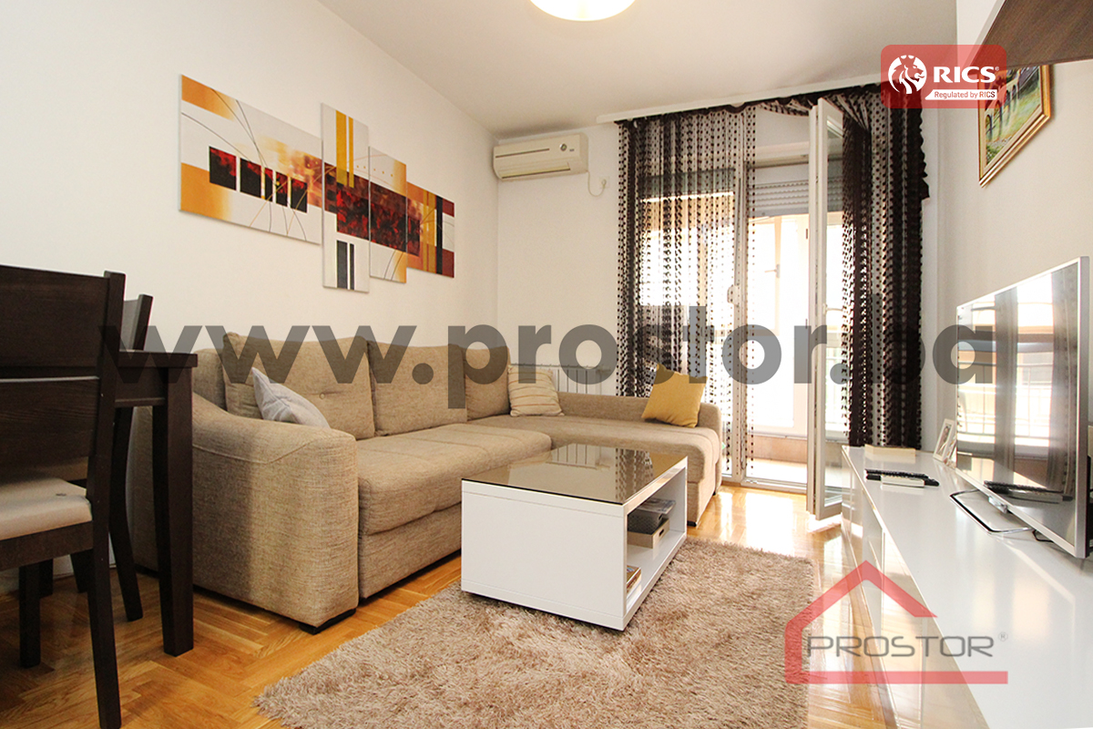 Izdaje se moderan dvosoban stan sa balkonom površine 46m2 smješten na dvanestom spratu novo-izgrađene stambene zgrade sa liftom. S obzirom na mikrolokaciju unutar naselja, nekretnina se nalazi u blizini svih sadržaja neophodnih za svakodnevni život, tako da se u radijusu od cca. 500m nalaze: market “Bingo”, stanice tramvajskog i autobuskog gradskog saobraćaja, Stupska petlja, pošta, apoteka, te veći broj trgovinskih i uslužnih objekata.
