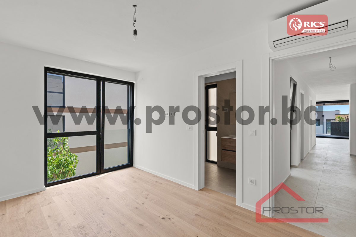 Apartman koji je predmet prodaje nalazi se na prvom spratu i odlikuje ga dvostrana orijentacija koja omogućava obilje prirodne svjetlosti tokom cijelog dana. Pažljivo osmišljen raspored prostorija obuhvata prostran i svijetao dnevni boravak povezan s moderno koncipiranom kuhinjom i trpezarijom, stvarajući ugodan ambijent za boravak i druženje. U stanu se nalaze dvije komforne spavaće sobe, od kojih je jedna luksuzna master soba sa vlastitim kupatilom i garderoberom, dok je dodatno kupatilo na raspolaganju ostatku domaćinstva. Također, apartman posjeduje praktičnu ostavu i funkcionalan hodnik koji povezuje sve prostorije. Poseban ugođaj pruža velika terasa s koje se prostire očaravajući, otvoren pogled na more, idealna za opuštanje i uživanje u mirnom okruženju.