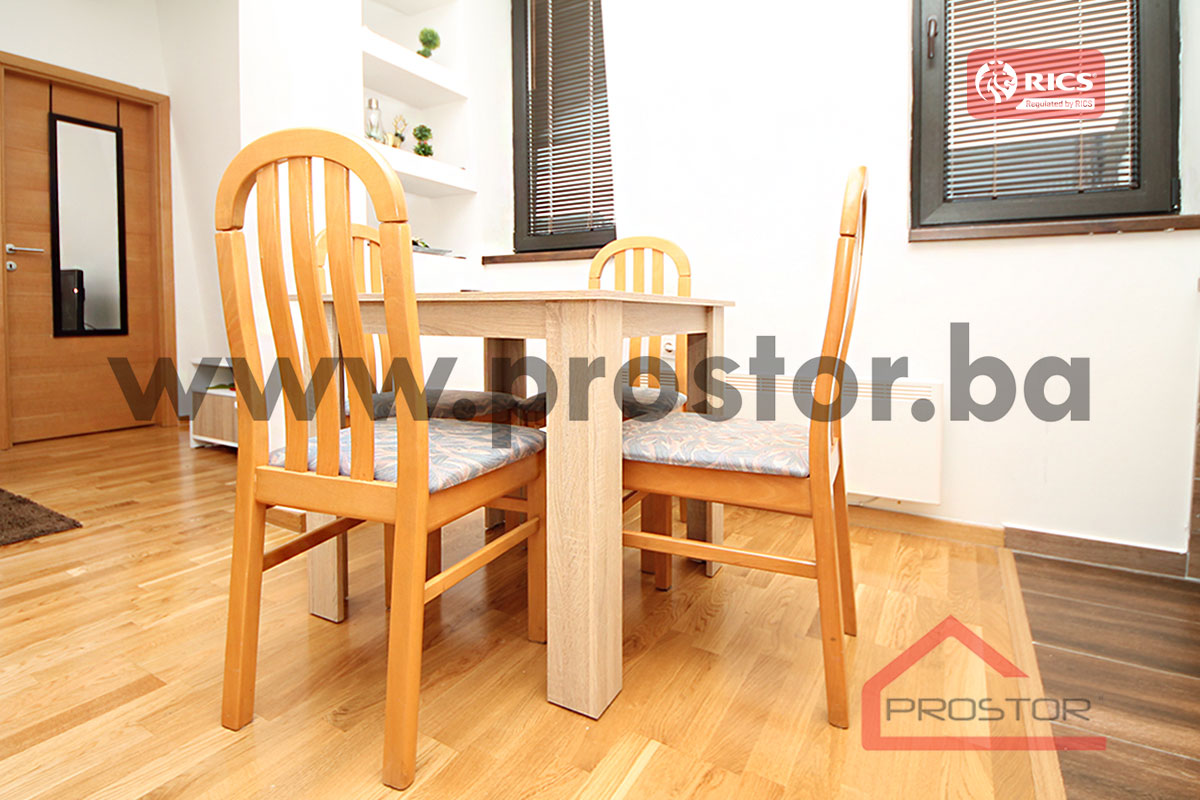 Enterijer je koncipiran tako da maksimalno iskoristi svaki dio prostora: dnevni boravak i kuhinja povezani su u savremen open space koncept, dok je spavaća soba izdvojena u zaseban dio, što obezbjeđuje mir i privatnost. Stan posjeduje i uređen hodnik te moderno opremljeno kupatilo .
