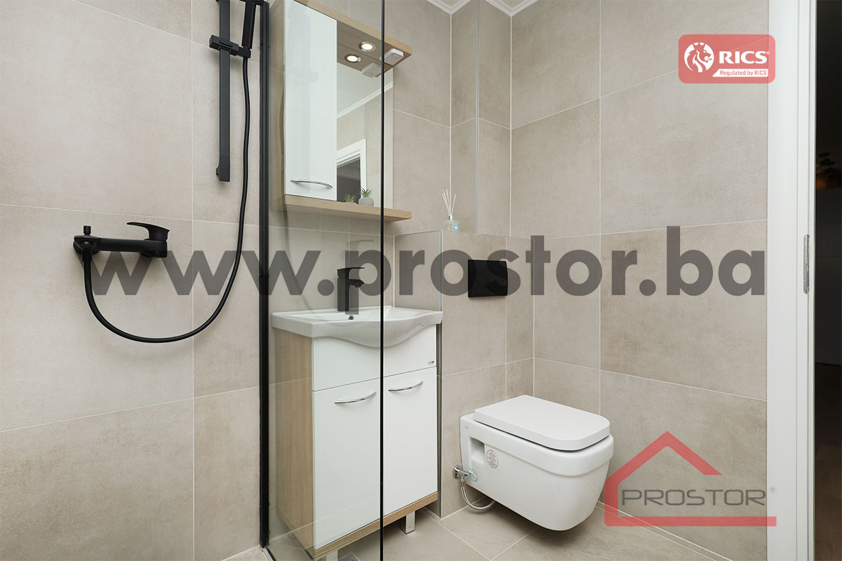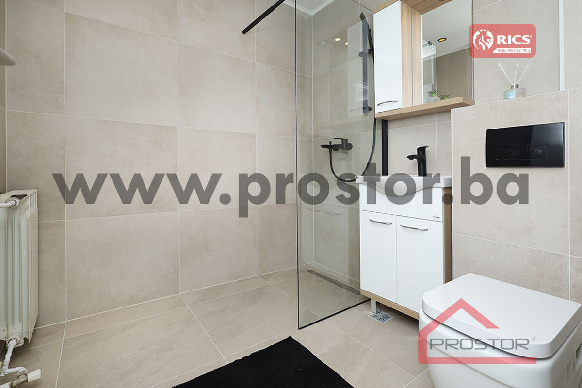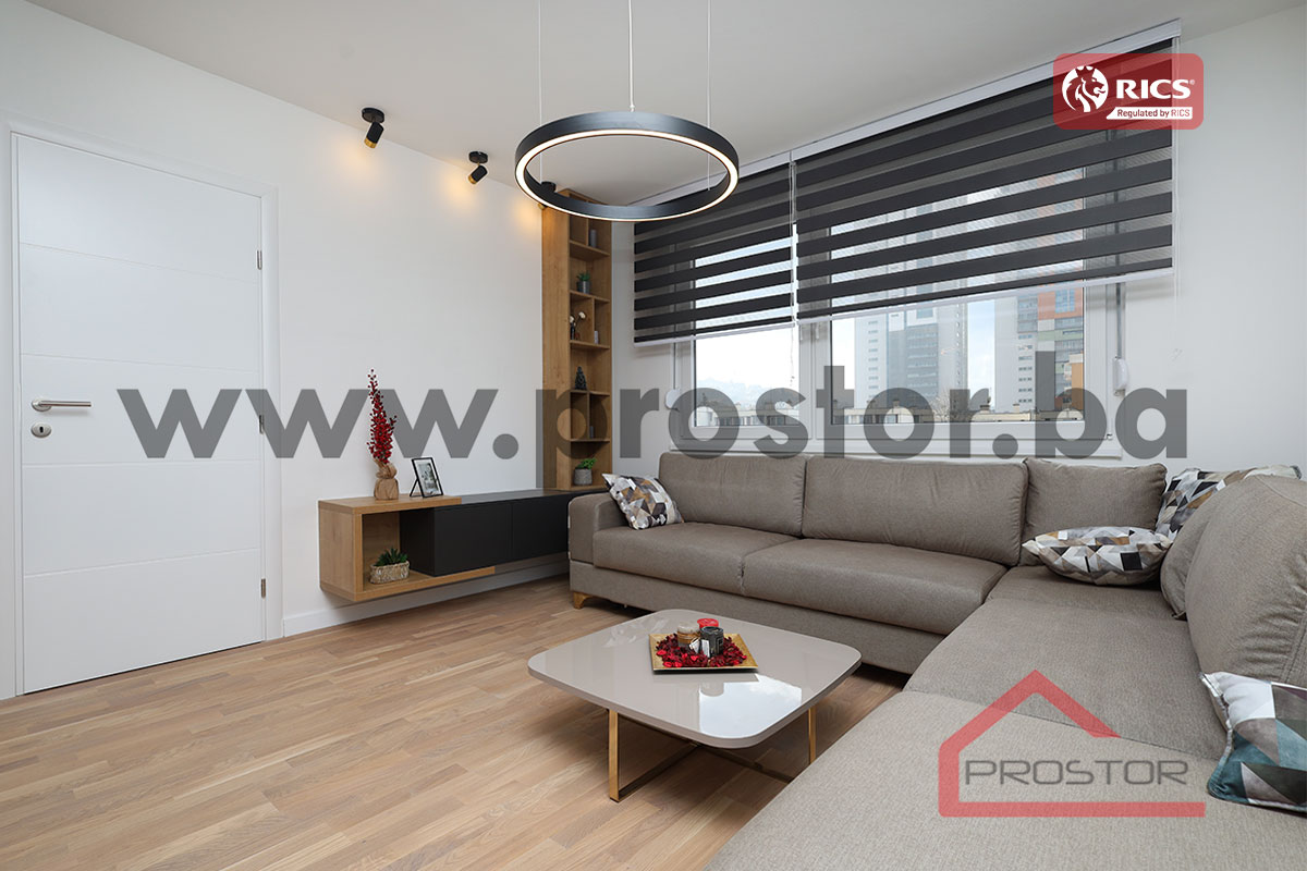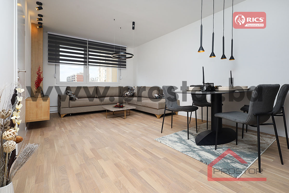 Prodaje se kompletno i kvalitetno adaptiran trosoban stan uknjižene površine 58 m2 (u kvadraturu ne ulaze površine balkona) na trećem spratu stambene zgrade sa tri lifta u naselju Hrasno, ulica Azize Šaćirbegović. Funkcionalan raspored prostorija, dvostrana (jug-sjever) orijentacija sa otvorenim pogledom samo su neke od karakteristika koje doprinose ugodnom boravku u nekretnini.