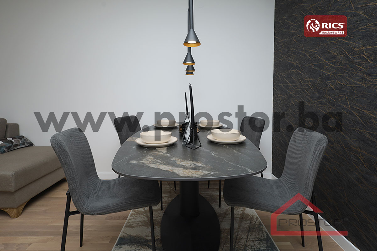 Veoma je bitno napomenuti da se nekretnina prodaje sa svim namještajem vidljivim na slikama (Bellona spavaća soba, ugaona garnitura i trpezarijski set), uključujući i nove GORENJE električne uređaje u kuhinji (mašina za suđe, frižider, ploča i rerna za kuhanje, napa).