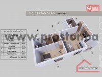 SADRŽAJ Dnevni boravak sa kuhinjm i trpezarijom, dvije spavaće sobe, kupatilo, hodnik, balkon/lođa.