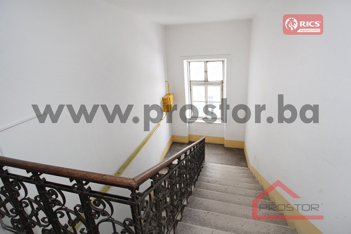 LOKACIJA Stan se nalazi na trećem spratu stambeno-poslovne zgrade u ulici Ferhadija, u neposrednoj blizini Hotela „Evropa“ i džamije Ferhadija.