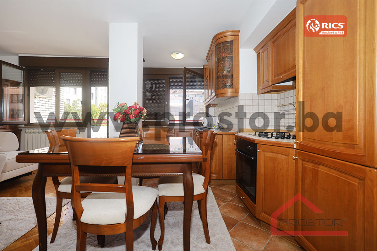 Pozicija stana je izuzetna – u neposrednoj blizini nalaze se Narodno pozorište, Vječna vatra, glavna šetnica Ferhadija, te brojni kafići, restorani, kulturne institucije i administrativne ustanove. Na svega par minuta hoda dostupni su tržni centri, banke, supermarketi, javni prevoz, kao i sve što centar Sarajeva nudi. Lokacija je savršena kako za porodični život, tako i za poslovne ljude koji žele imati sve sadržaje u najbližem okruženju.