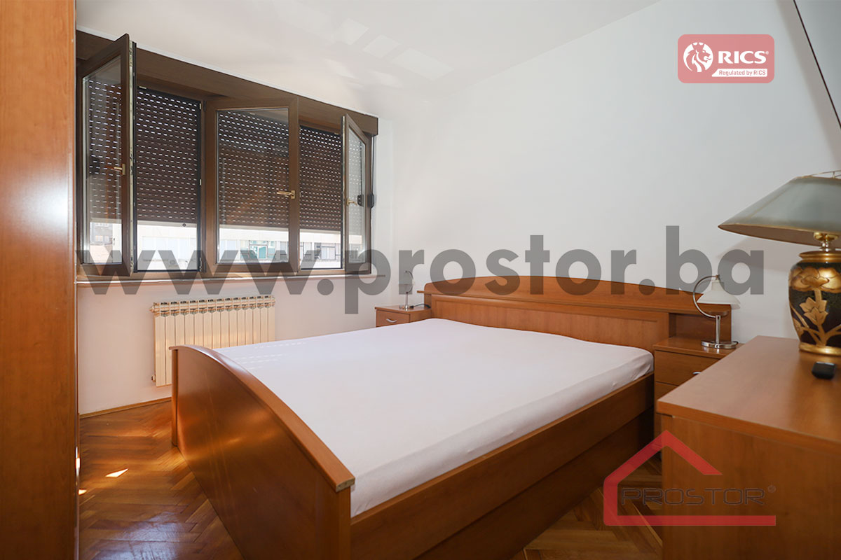 Iznajmljuje se prostran i svijetao stan površine 87m⊃2;, smješten na prvom spratu stambene zgrade u ulici Branilaca Sarajeva, u samom srcu grada – neposredno uz Narodno pozorište. Lokacija je jedna od najatraktivnijih u Sarajevu i predstavlja idealno mjesto za urbani način života.