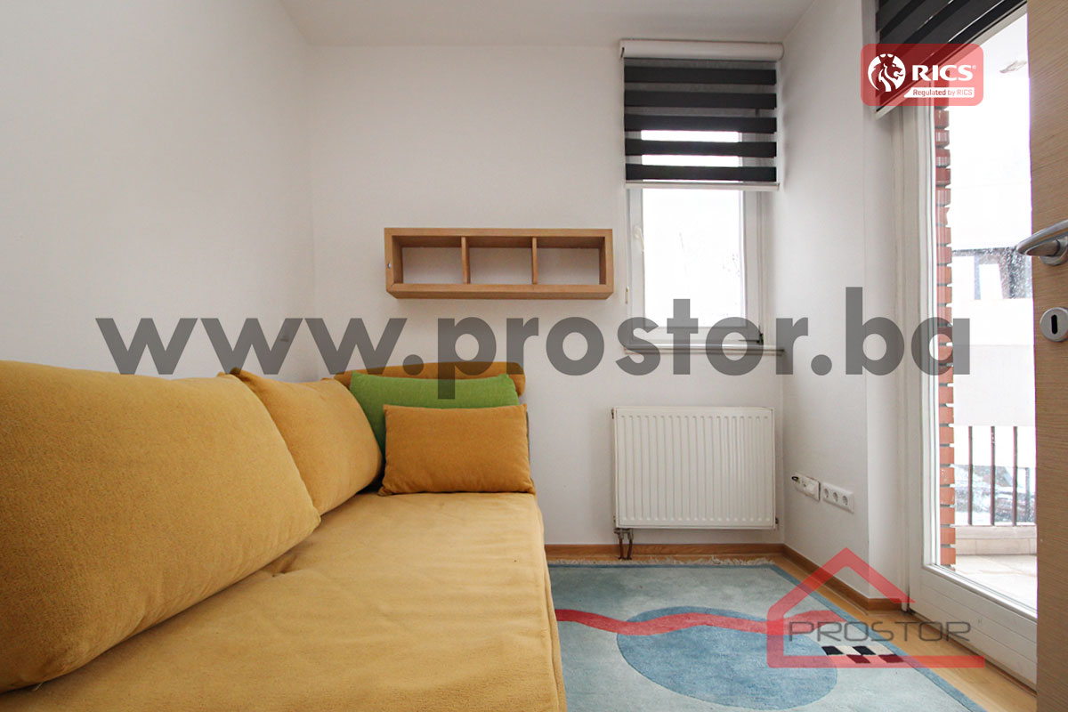 Izdaje se moderan namješten petosoban stan površine 116m⊃2; na drugom spratu stambene zgrade sa liftom u ulici Ejuba Ademovića. Stan se nalazi na odličnoj lokaciji u blizini Narodnog pozorišta.