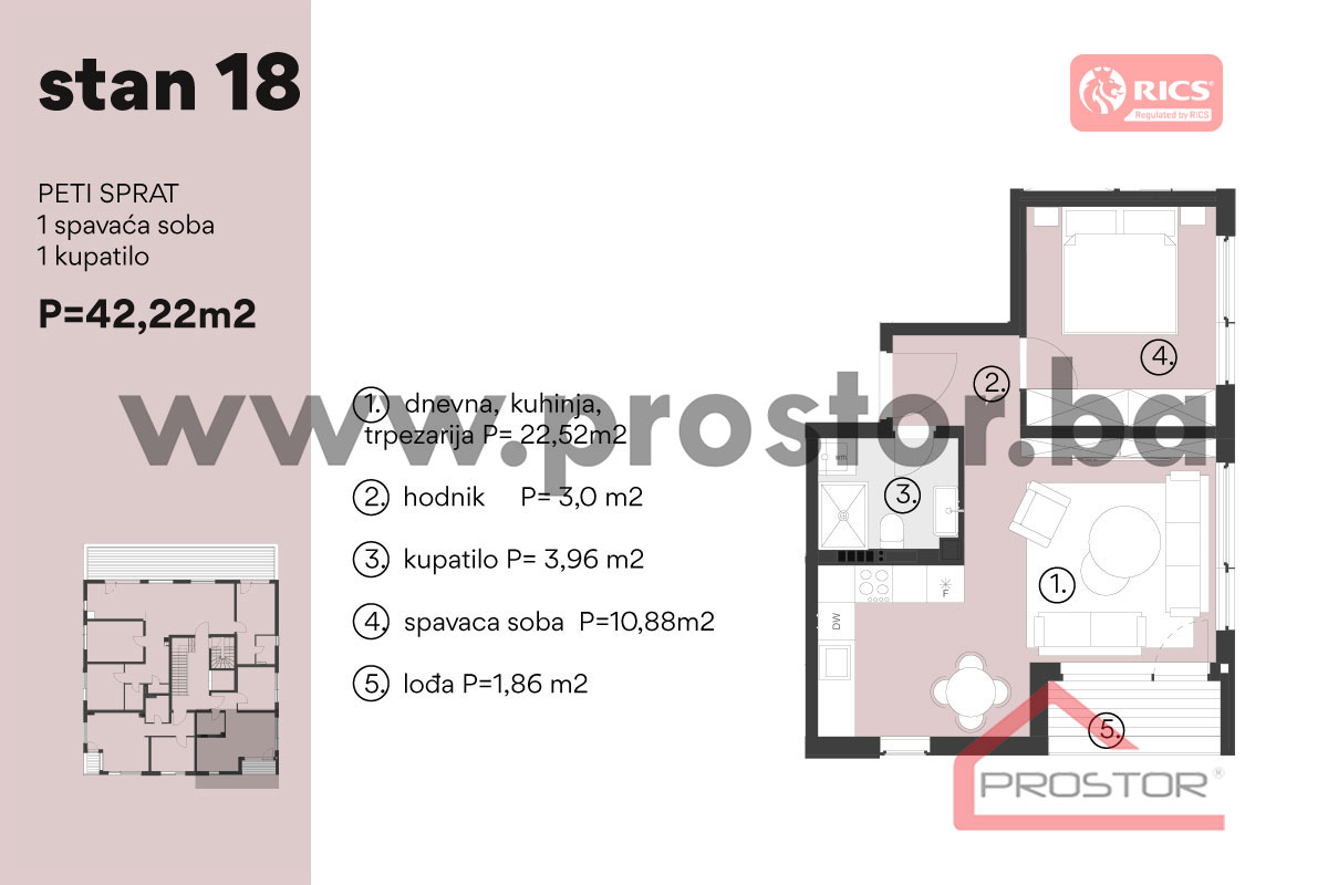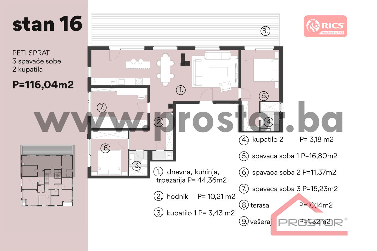 - Stanove projektovane površine od 41m2 do 116m2 na etaži petog sprata.