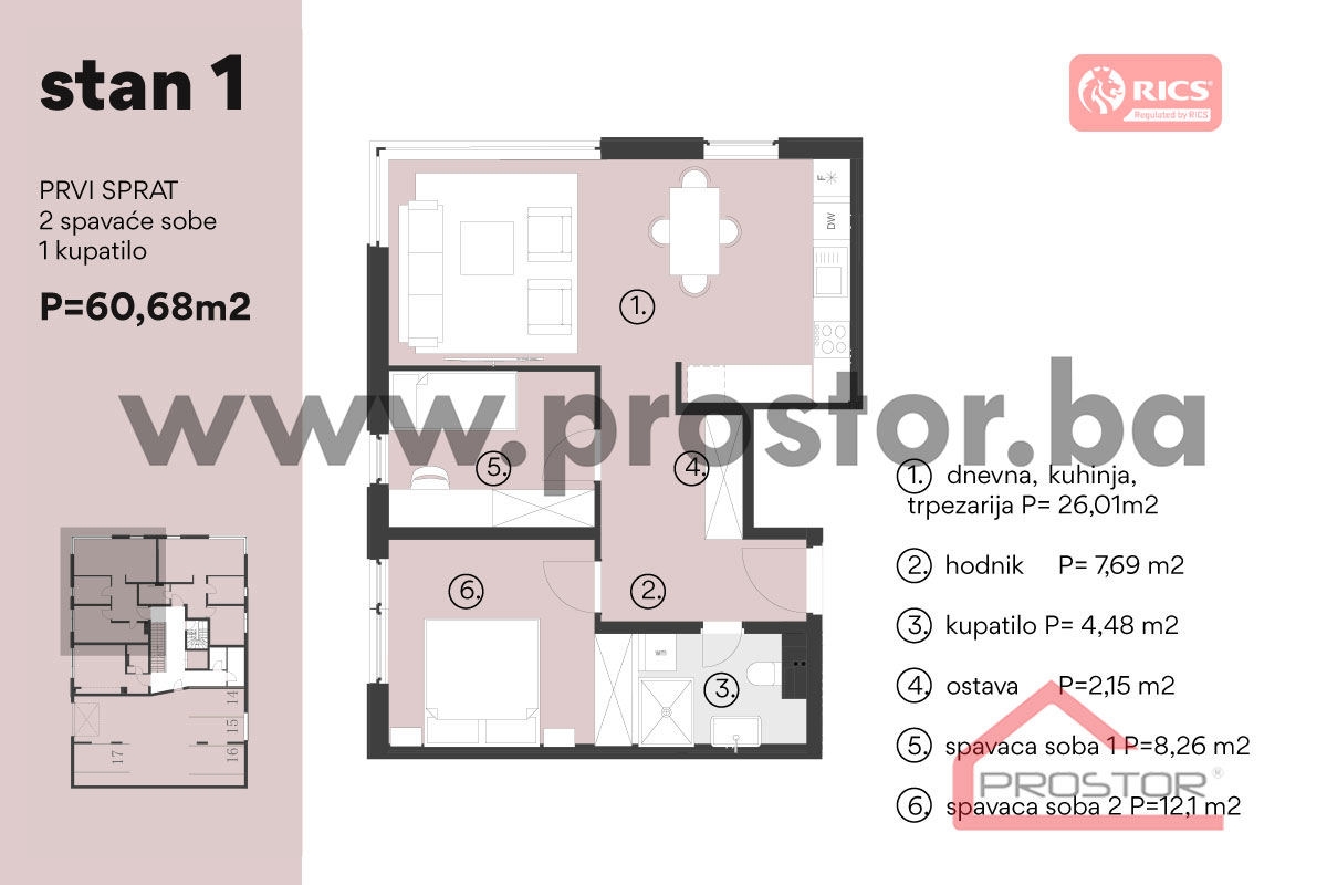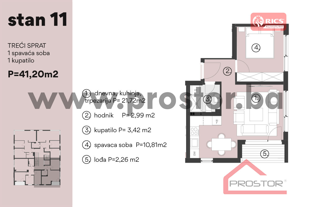 - Stanove projektovane površine od cca 27m2 do 61m2 na etaži prvog sprata