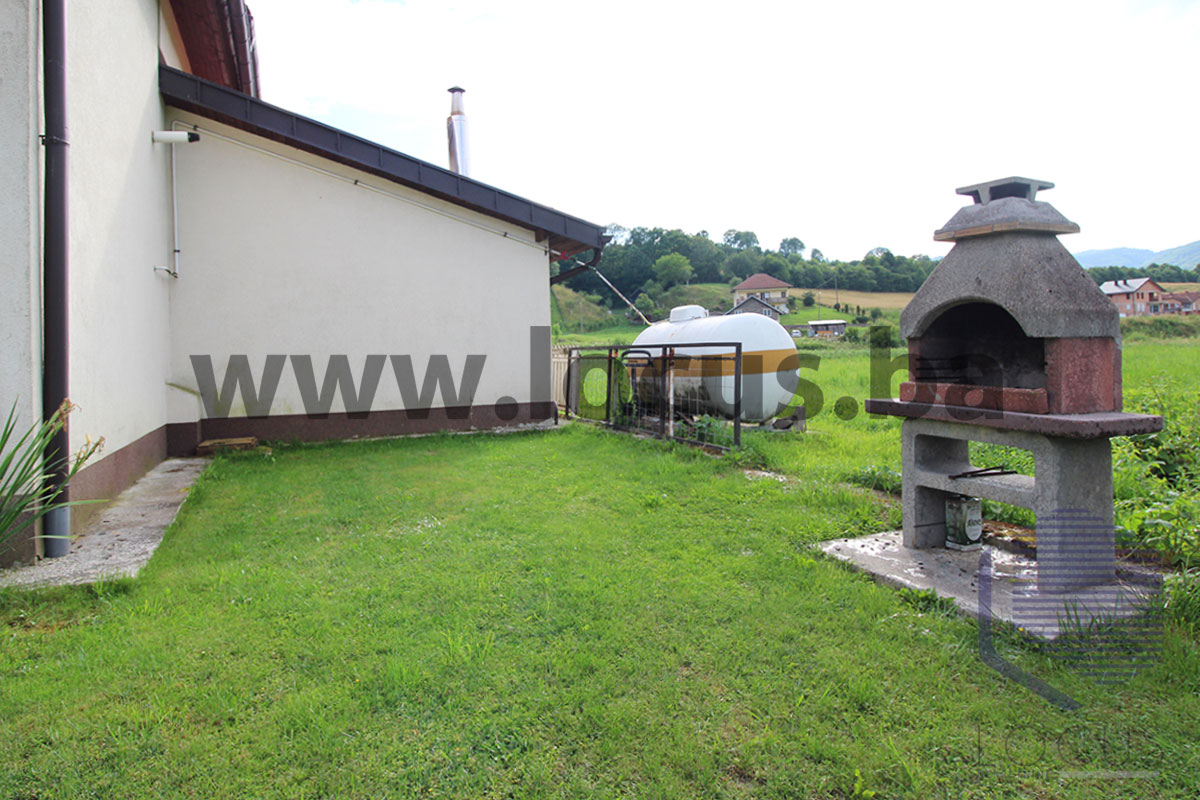 Pored se nalazi garaža ispred koje je kvalitetnim kamenom popločani dio dvorišta koji se koristi za parking nekoliko vozila. Iza kuće je smješten održavani travnjak sa zidanim roštiljem koji budućim vlasnicima omogućava boravak u potpunoj privatnosti, a poseban ugođaj pruža čisti planinski potok koji protiče dužinom čitave parcele.