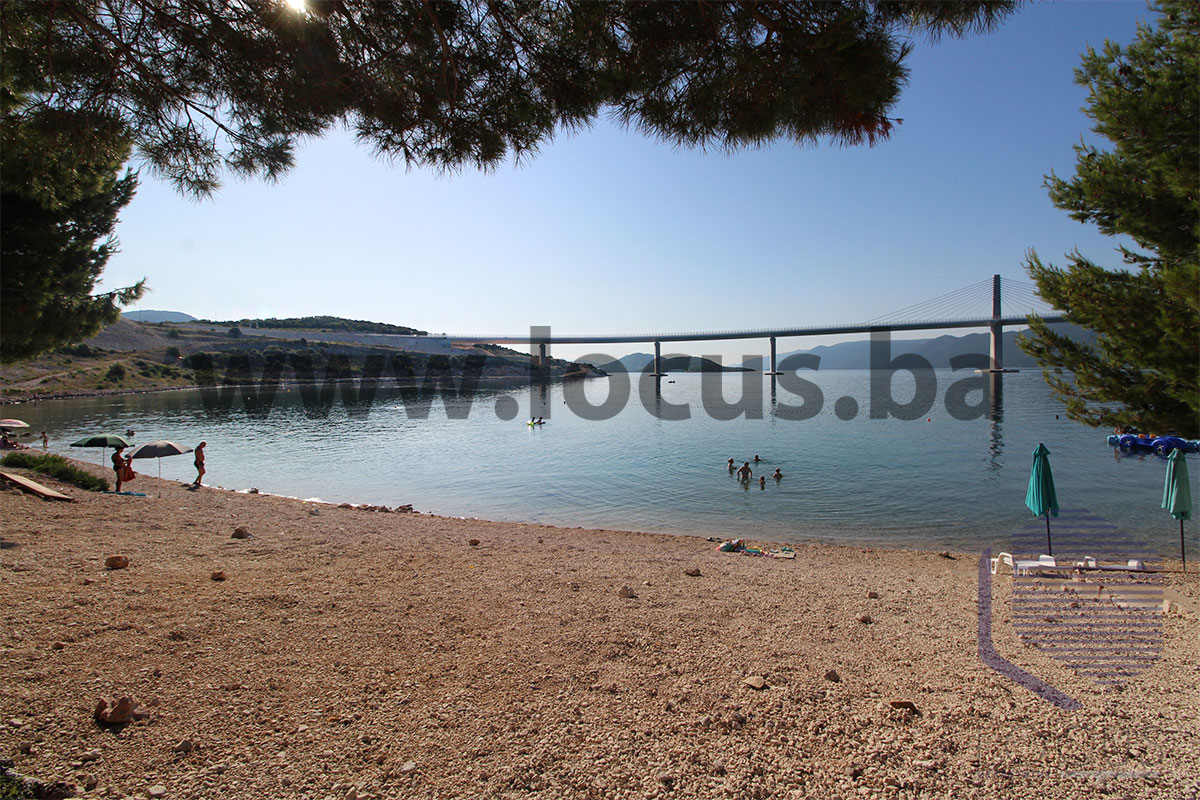 Bitno je napomenuti da je Neum udaljen samo cca. 15 minuta lagane vožnje a sama nekretnina se nalazi u mirnom okruženju udaljenom od buke u kojem je izgrađeno mnoštvo kvalitetnih stamenih objekata i koje predstavlja odlično mjesto za miran porodični odmor. U radijusu od cca. 100 metara su dostupni osnovni sadržaji kao što su trgovine i ugostiteljski objekti. Posebnu pogodnost predstavlja blizina mora i plaže Beach Komarna koja je udaljena samo 2-3 minute lagane šetnje. Također na udaljenosti od 350-400 metara lijepo uređenim asfaltnim putem pored mora sa uličnim osvjetljenjem se dolazi do prekrasne morske uvale sa čistom i finom šljunkovitom plažom, kaffe barom i direktnim pogledom na Pelješki most, a plaža za kućne ljubimce je smještena u produžetku.