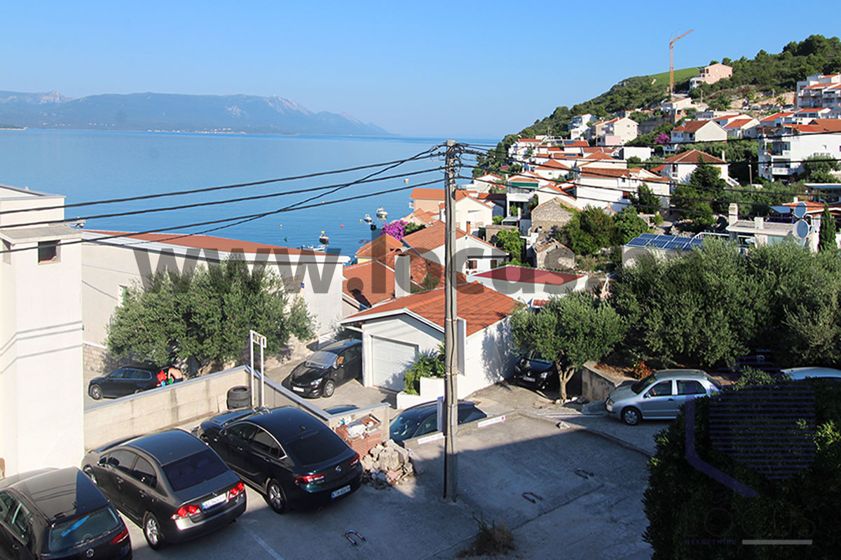 Na prvom spratu se nalazi dnevni boravak iz kojeg se pristupa na prostranu terasu sa pogledom na more, spavaća soba sa izlazom u pripadajuću baštu koja predstavlja odličan potencijal za vanjsko uređenje i kupatilo.