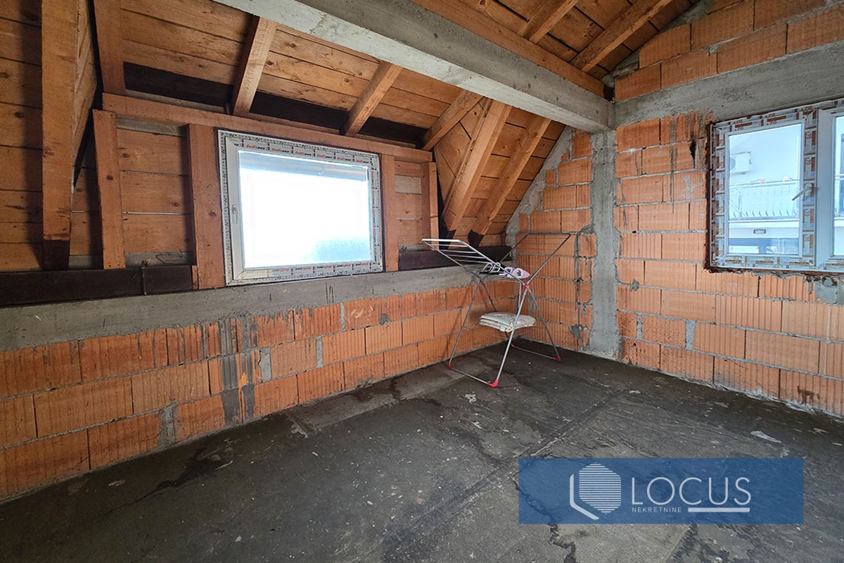 Na prizemlju se nalazi veliki poslovni prostor sa dva toaleta I ostavom i garaža. Prvi sprat je odmah useljiv, trenutno se koristi i sastoji se od dnevnog boravka u kombinaciji sa kuhinjom i trpezarijom, spavaće sobe, kupatila, balkona i hodnika. Etaže drugog sprata i potkrovlja su u roh bau stanju tako da je budućim vlasnicima ostavljena mogućnost finalnog uređenja i organizacije prostora u skladu sa ličnim potrebama. Bitno je napomenuti da se kuća nalazi u pristupačnom okruženju pogodnom za porodični život. U blizini se dostupni sadžaji kao što su trgovački i ugostiteljski objekati, pekara, apoteka, dječiji vrtić, itd.