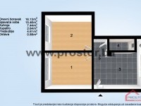 Na desnoj strani predsoblja nalazi se kuhinja sa trpezarijom i kupatilo, dok je lijevo dnevni boravak i spavaća soba. Pristup ostavi omogućen je iz kuhinje.