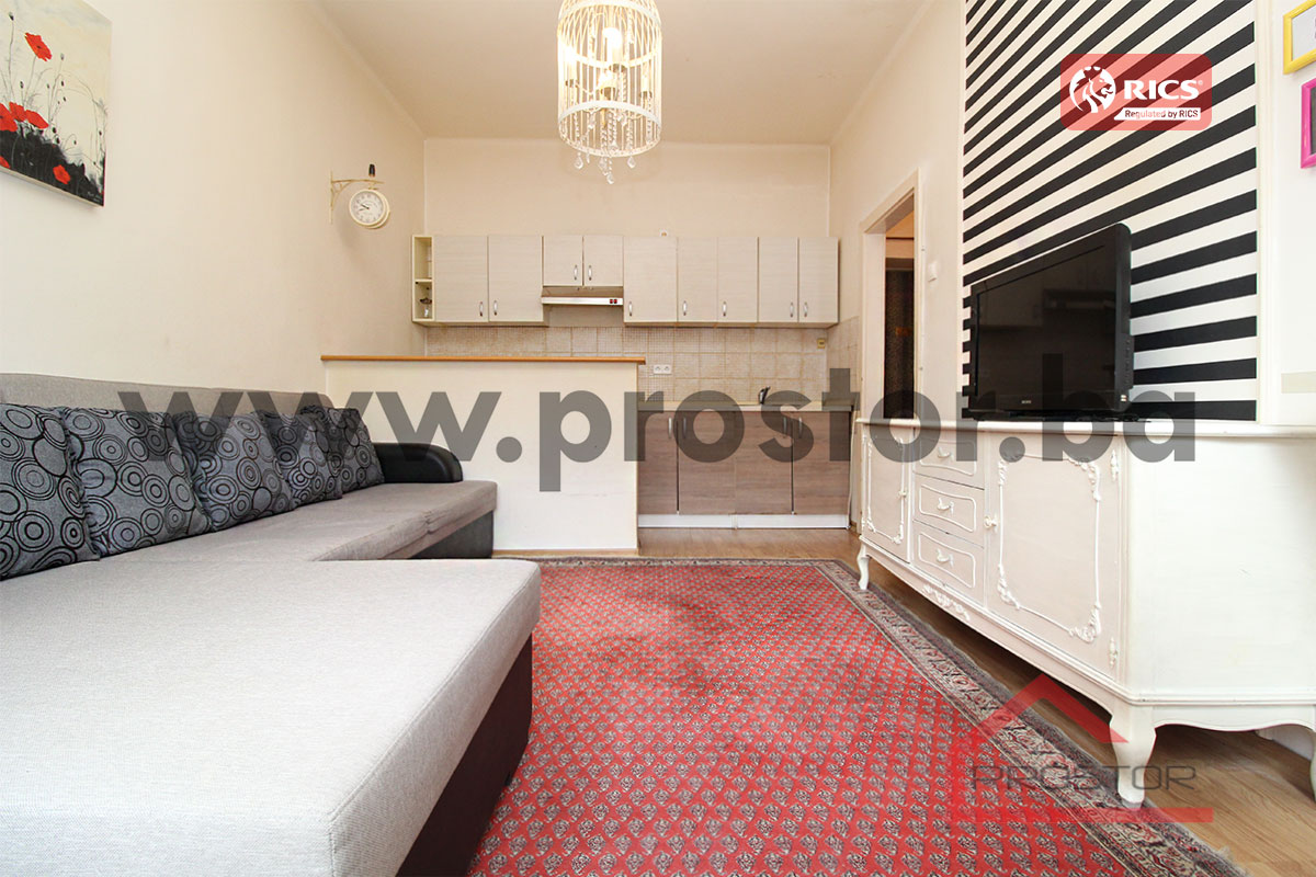Prodaje se djelimično adaptiran manji dvosoban stan uknjižene površine 30m2 smješten na prvom spratu stambene zgrade. U neposrednoj blizini se nalaze svi potrebni sadržaji za svakodnevni život.