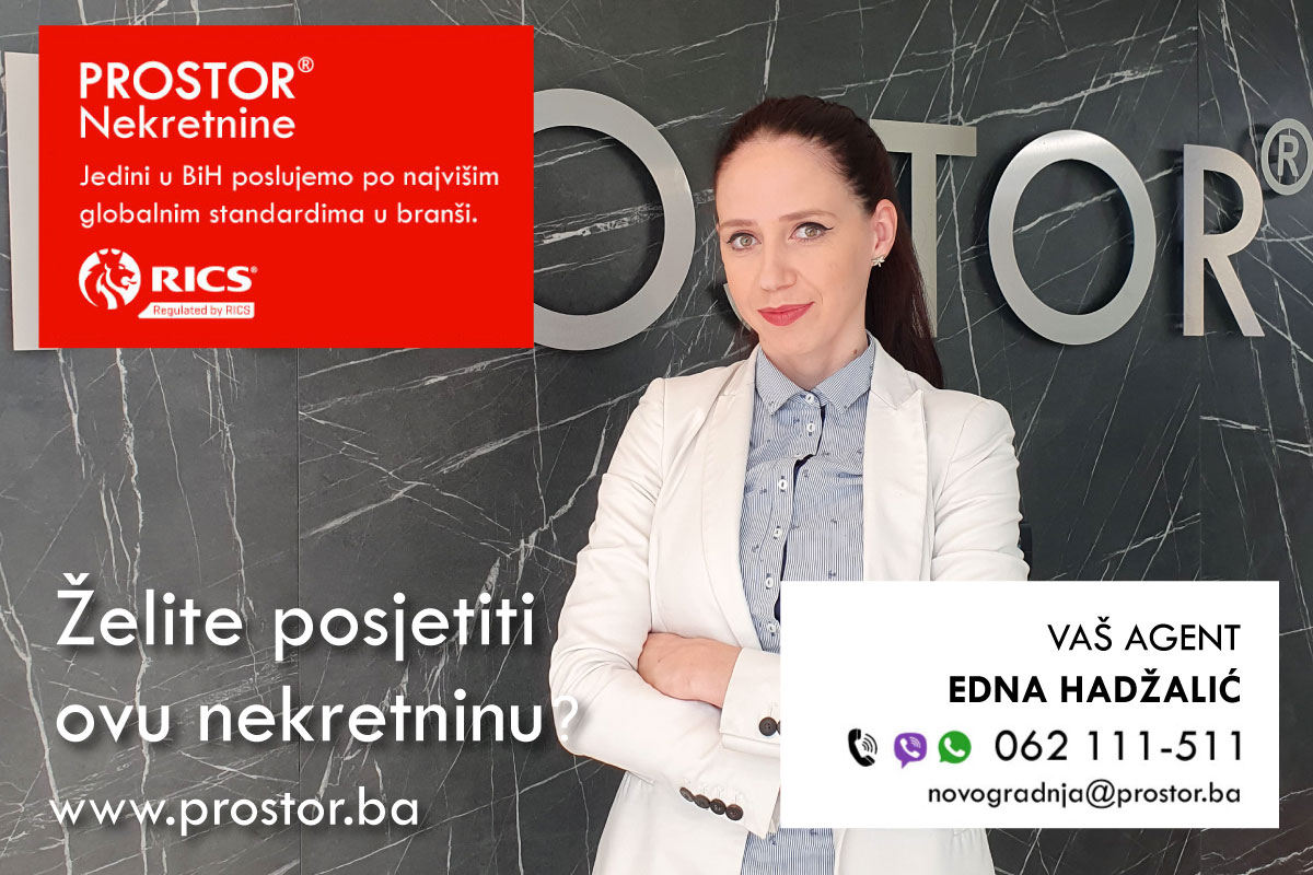 Za rezervacije, kupovinu i sve dodatne informacije o ostalim pojedinostima pozovite Vašeg agenta Mob/Viber/ Whatsapp: Edna Hadžalić +387 62 111 511 ili pošaljite email na: novogradnja@prostor.ba