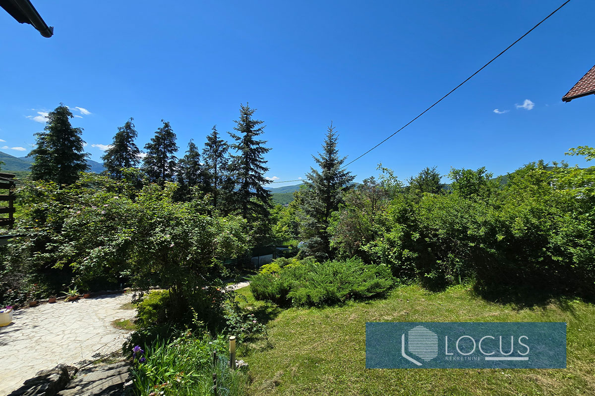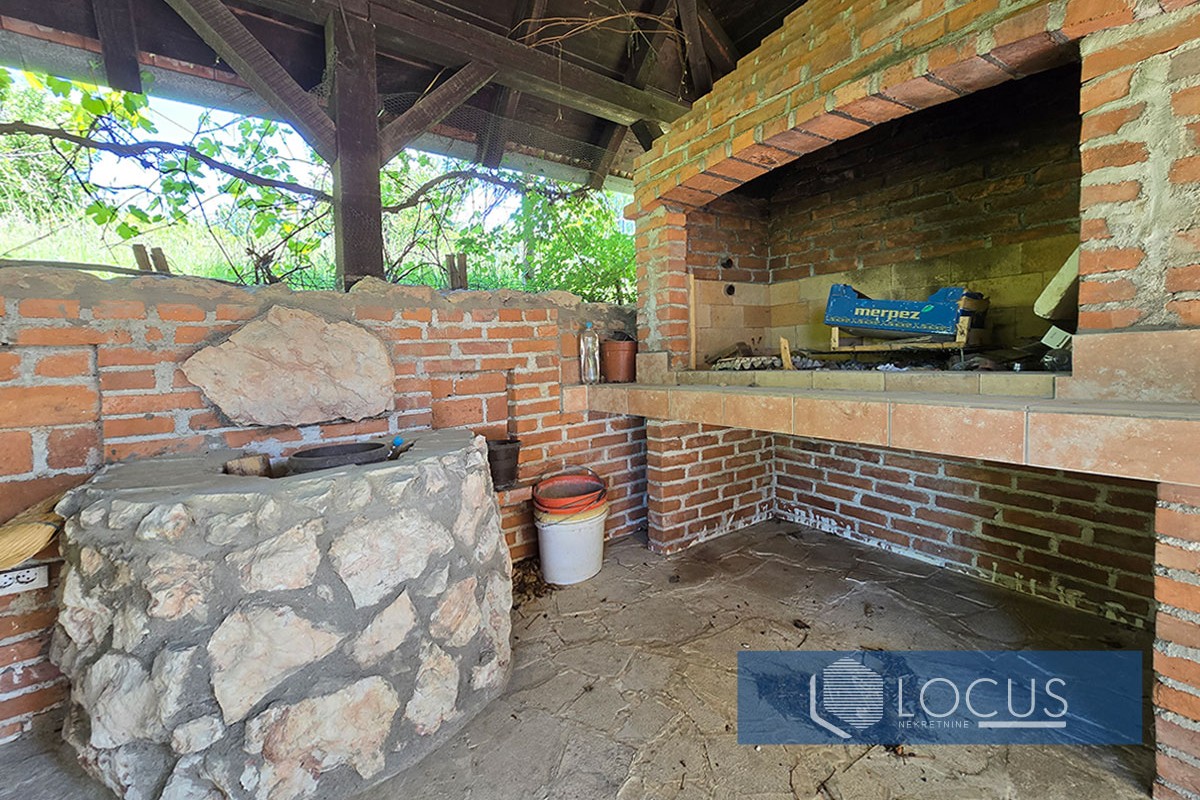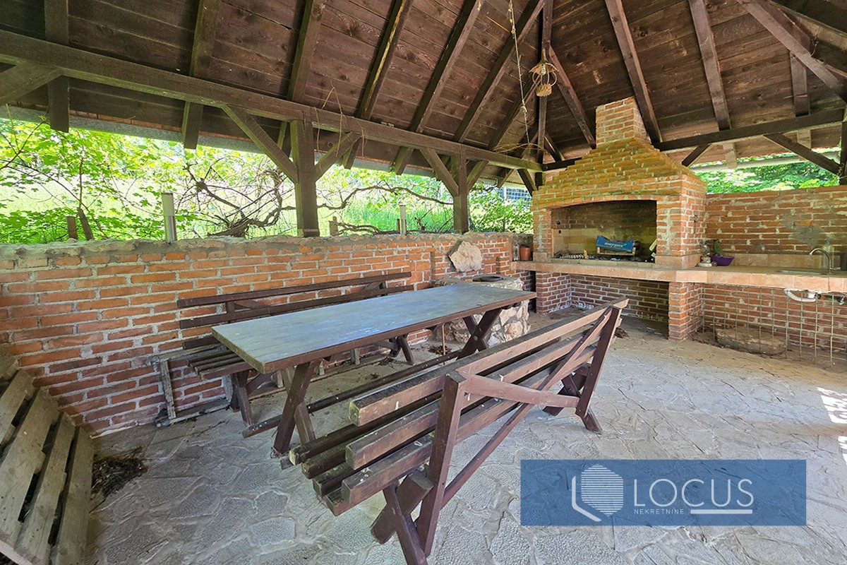 Vikendica je okružena prostranim i osunčanim dvorištem sa obiljem zelenila i nekoliko visokih borova. Obzirom na površinu parcele ova nekretnina također predstvalja odličan potencijal za izgradnju još jednog objekta.